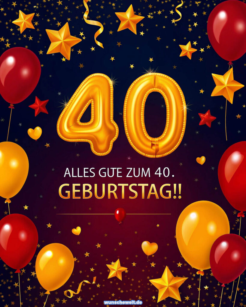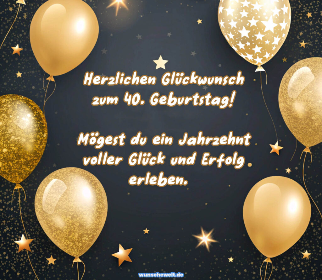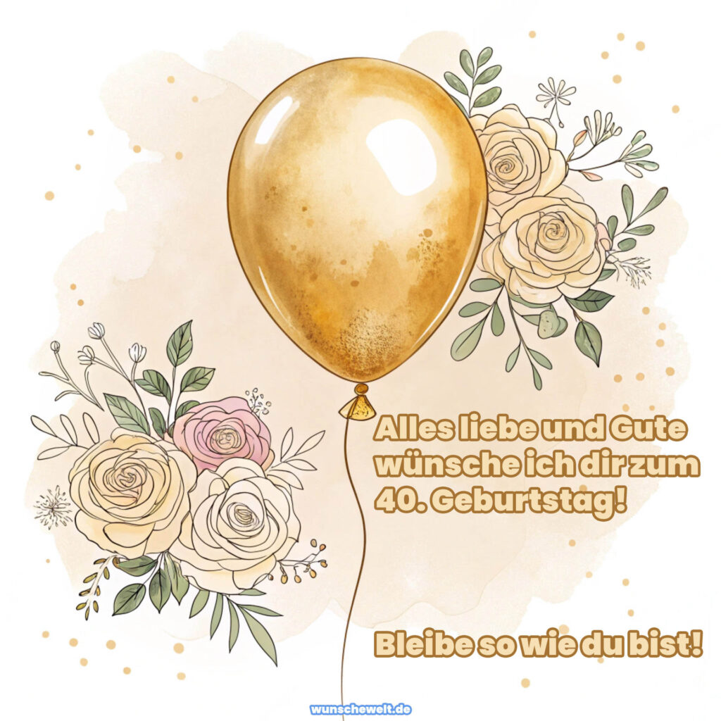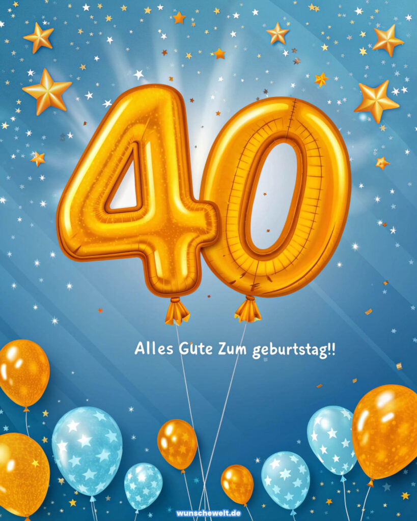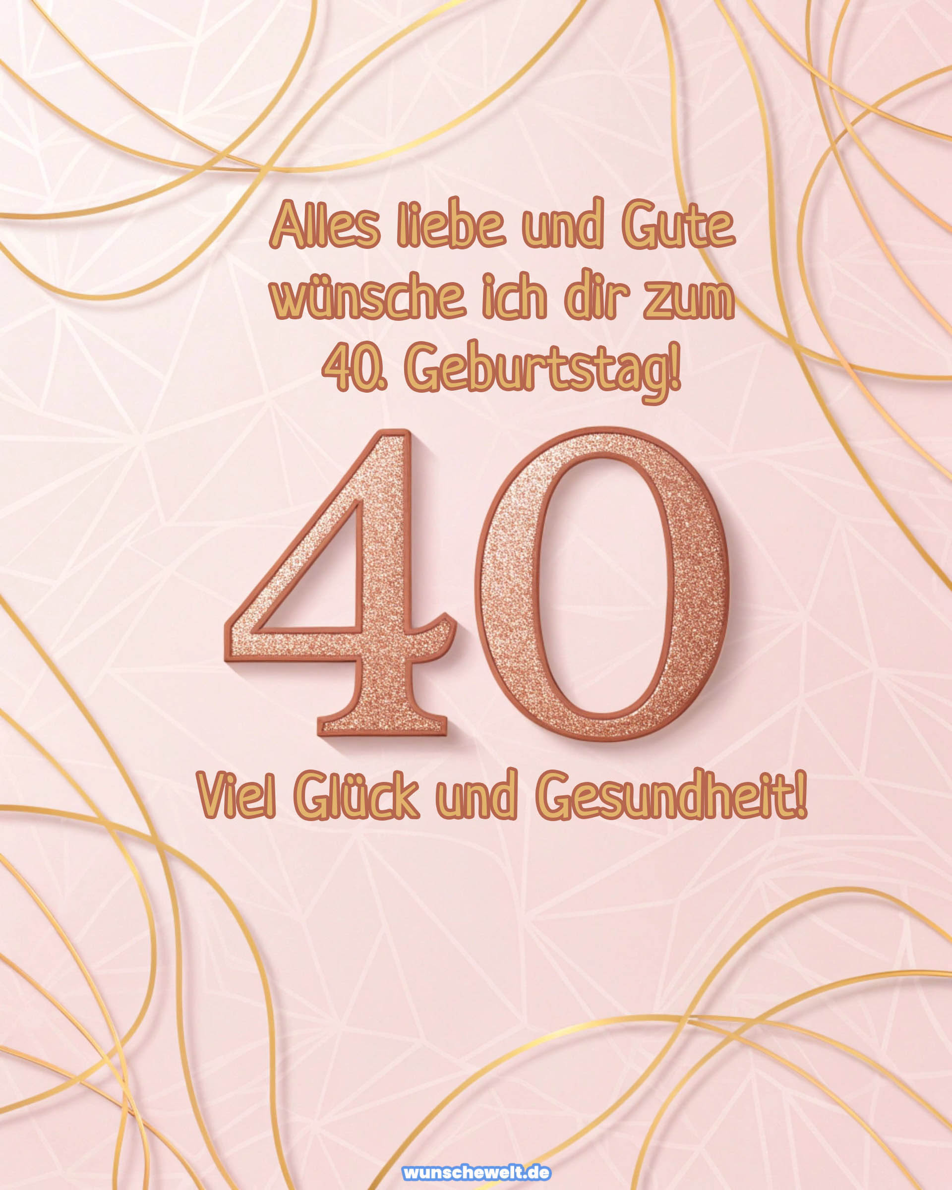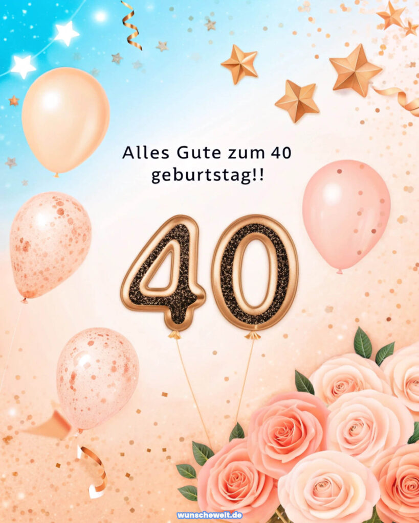 40 Jahre bedeuten 40 Gründe zum Feiern! Möge jeder Moment deines Geburtstages von Glück, Lachen und wundervollen Erinnerungen erfüllt sein!