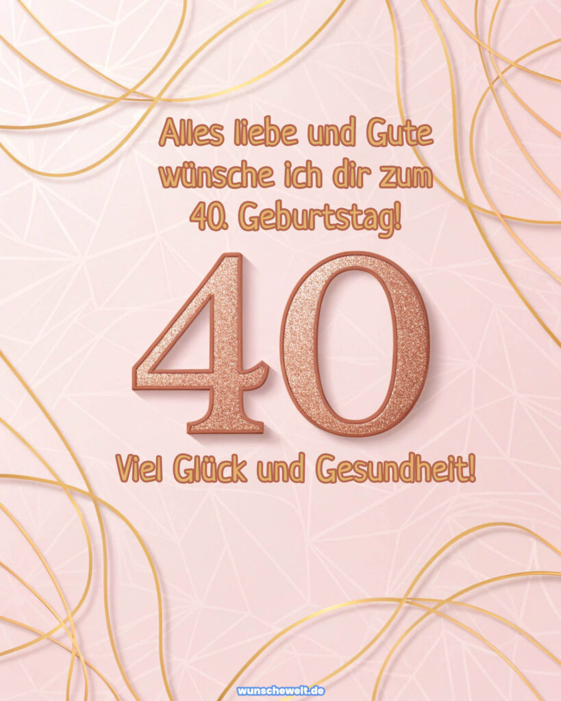 Vier Jahrzehnte voller Leben, Liebe und Erfolg – und du strahlst heller als je zuvor! Möge das neue Lebensjahr voller Glück, Gesundheit und neuer Abenteuer sein.